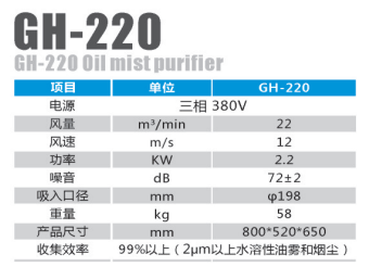GH系列油雾净化机采用离心分离及高效过滤技术,经过油雾净化机5级过滤处理后,油雾收集效率达99%以上,能减少由于烟雾、油雾对机床电路系统,控制系统的影响,降低机床的维修成本。改善工作环境实现清洁生产,保护员工的身心健康,减少职业病的产生。