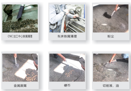 手动清尘,使用方便。不堵塞,风量大,可吸水、油、切削液、金属废渣等。