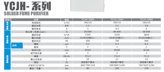 YCJH系列焊锡烟尘净化器是我司结合环保排放要求研制开发的激光行业烟尘净化器,具有风量大、稳定可